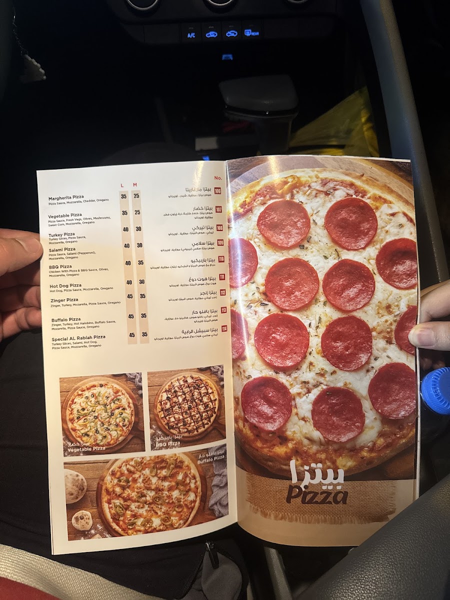 Highlights like the Hummus Falafel Nablussi Cheese, traditional فطيرة شامية (Shami-style flatbreads), and the Special Al Rabiah Pizza demonstrate the careful attention to authentic taste and variety. Paired with classic beverages such as Arabic coffee and warm tea, the menu encourages leisurely, satisfying dining experiences.